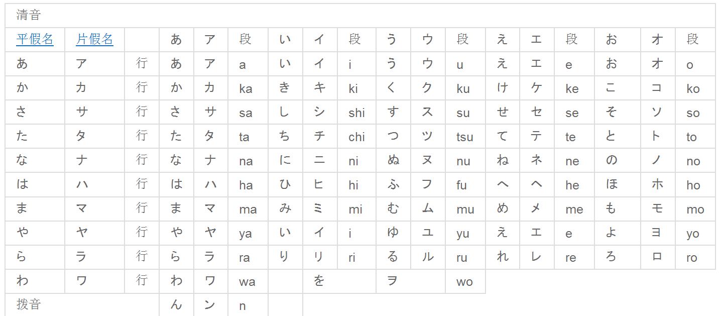 五十音图表 平假名和片假名表