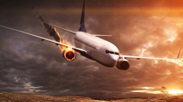 飞机正在上空飞行,发动机起火