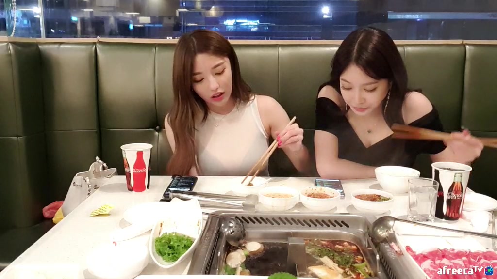 双胞胎妹子吃美食,秀色可餐啊,看着就饱了!
