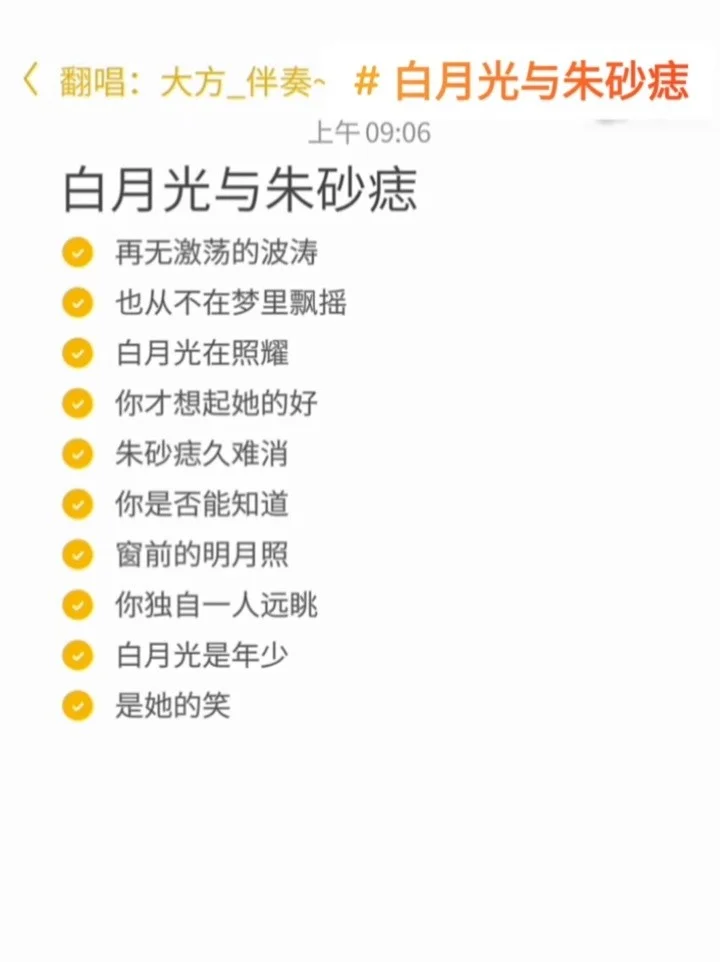 《白月光与朱砂痣》歌词 字体为手机字体,欢迎投稿