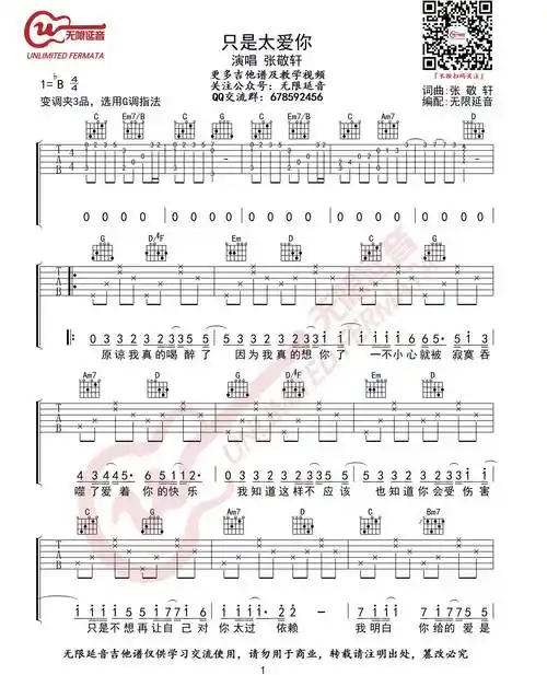 张敬轩 只是太爱你 超简单吉他谱 唯音悦制谱c调六线pdf谱吉他谱-虫虫