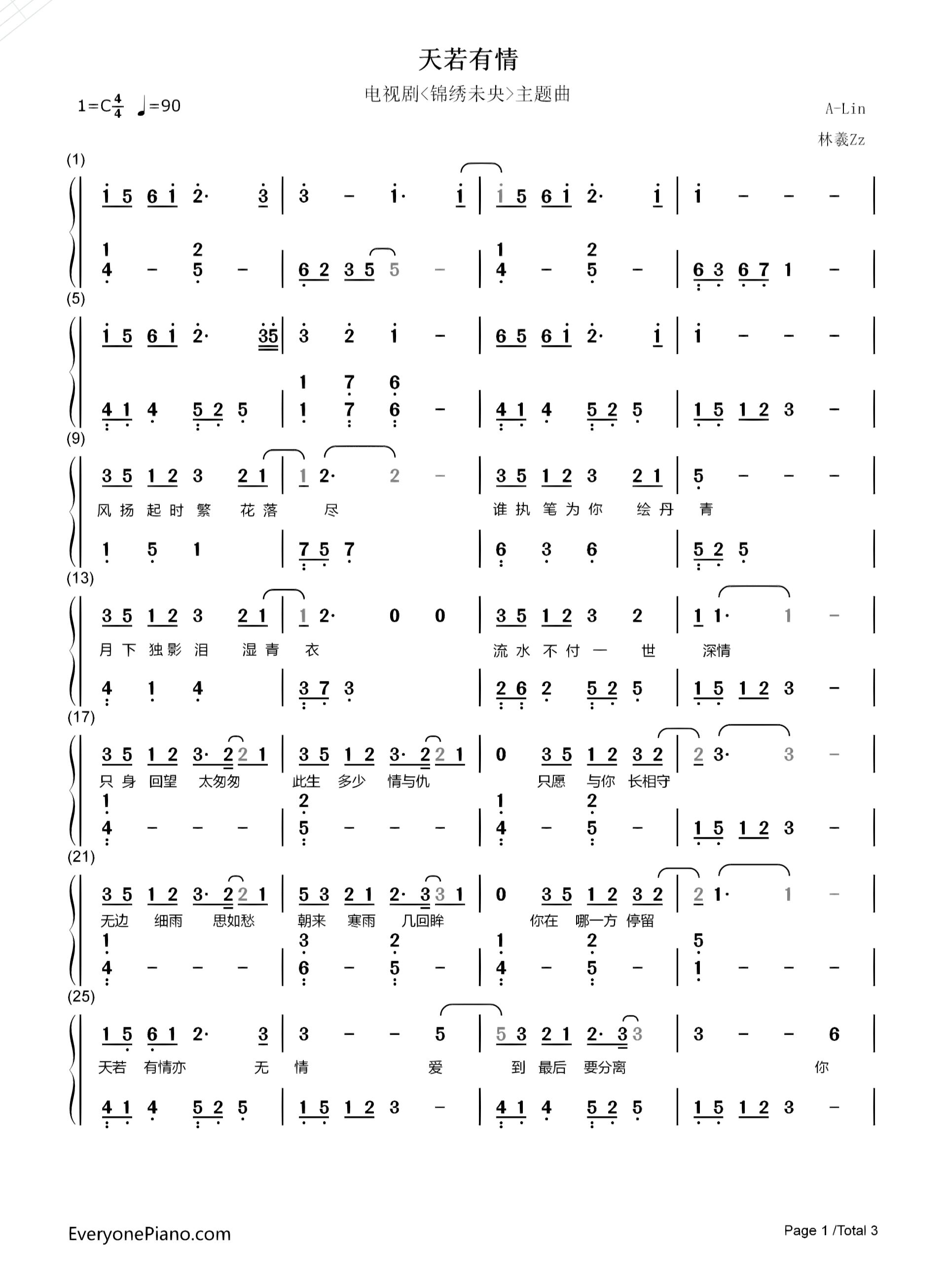 天若有情(电视剧《锦绣未央》主题曲) lin 歌谱简谱网