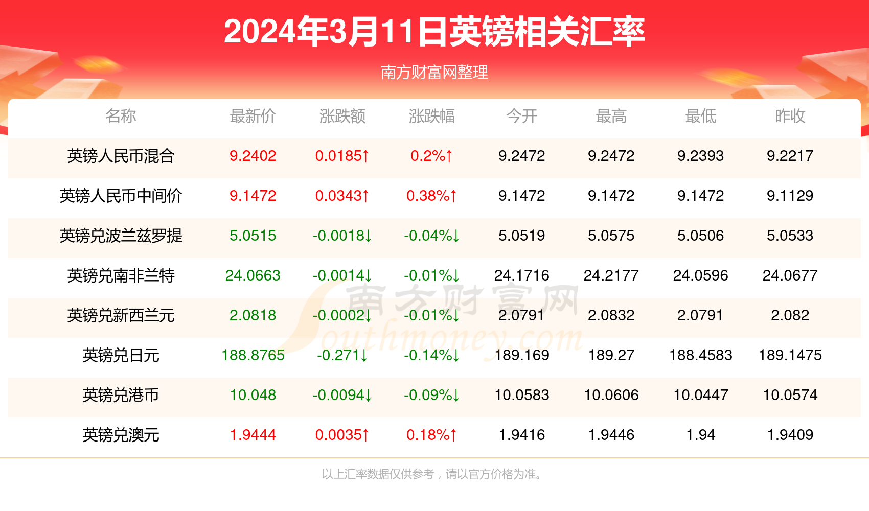 英镑汇率 - 南方财富网