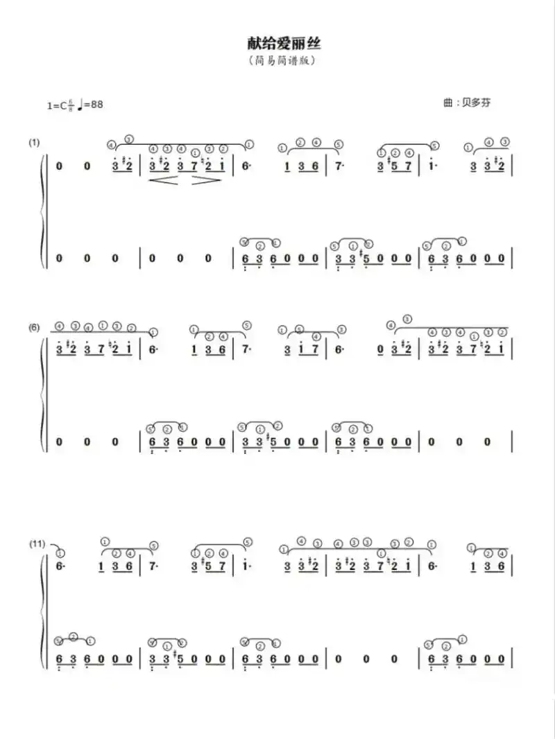 《献给爱丽丝》双手简谱版~超适合零基础的爱好者哦 - 抖音