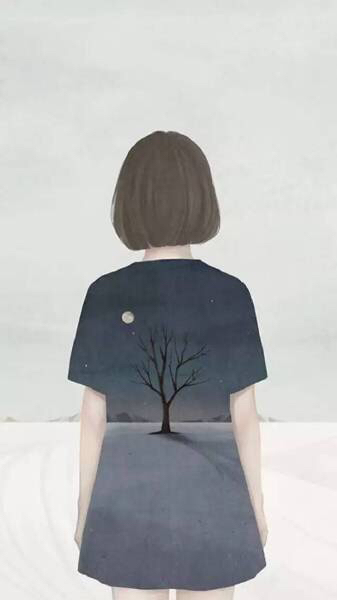 想找一个短发女孩背影有树和月亮的图片