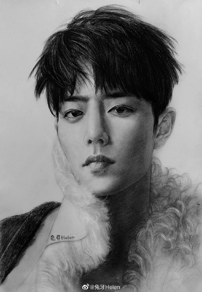 来看看粉丝笔下的肖战! 素描下的轮廓和眼神,画风好爱