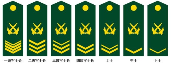 称谓由低至高为:下士,中士,上士,四级军士长,三级军士长,二级军士长