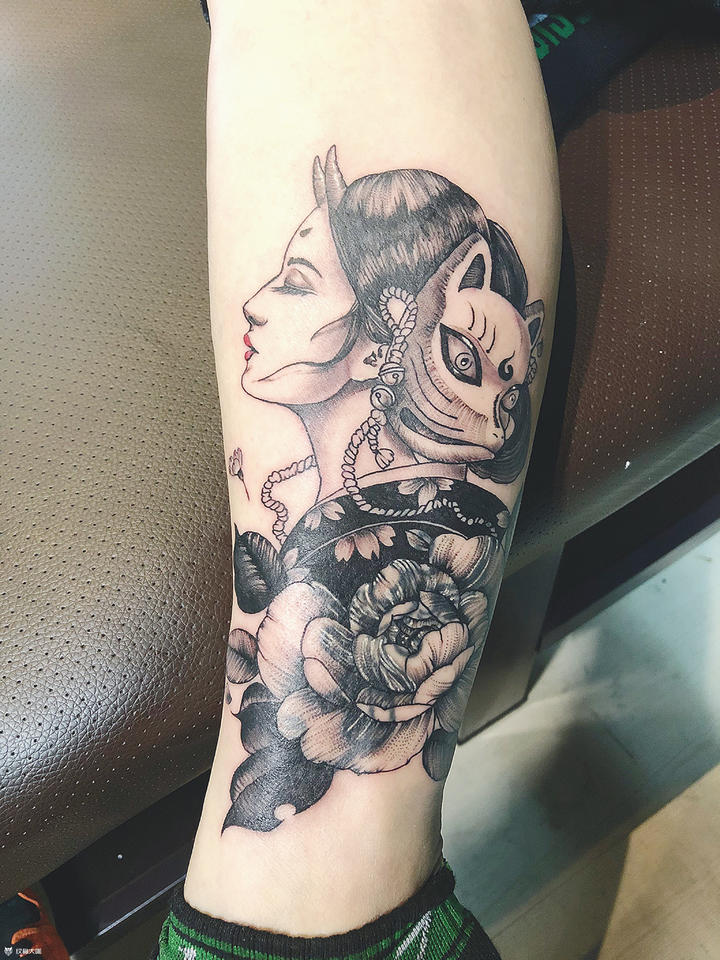小腿艺妓_纹身图案手稿图片_无极的纹身作品集