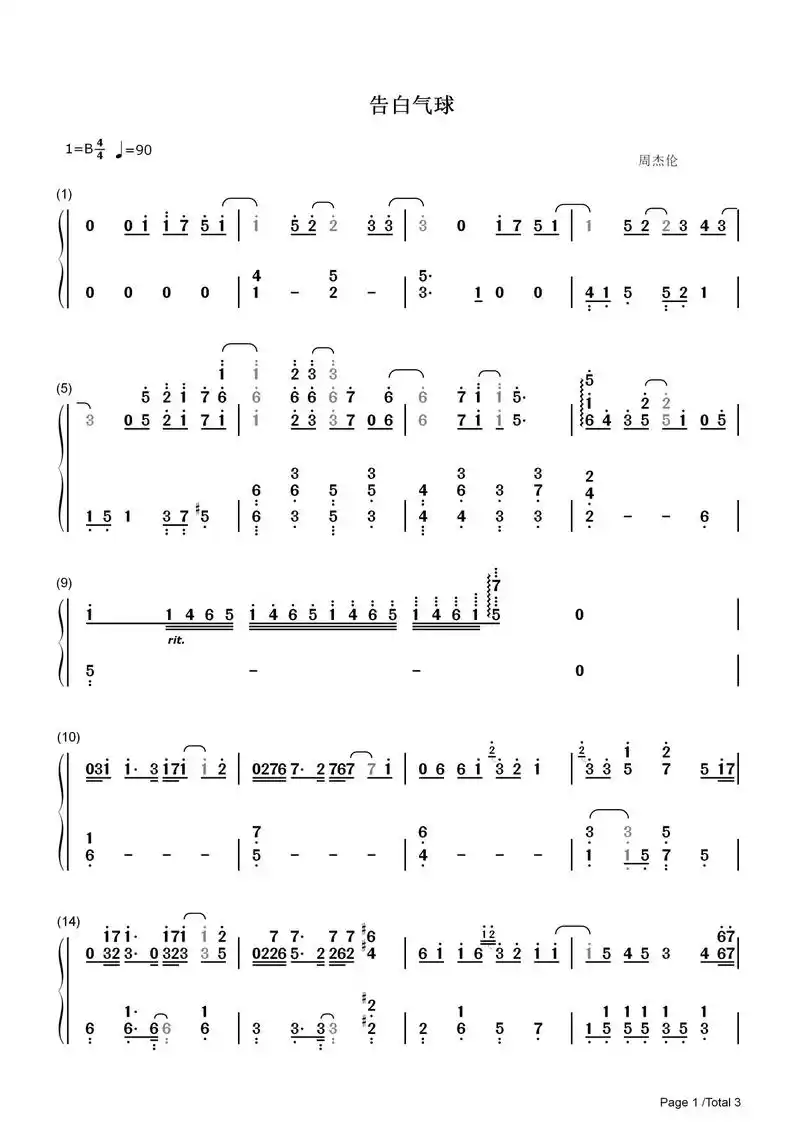 告白气球(完整版)_简谱_搜谱网