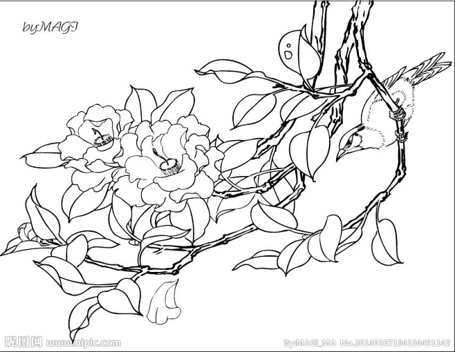 临摹线描画谱-茶花