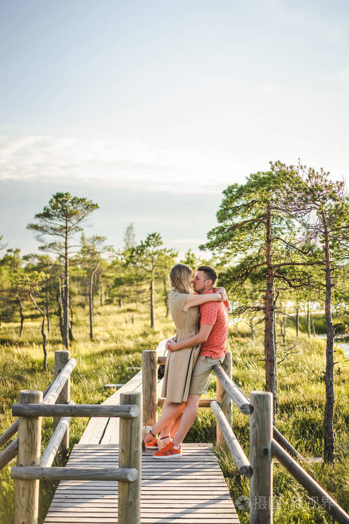 热恋中的情侣男人拥抱他的妻子
