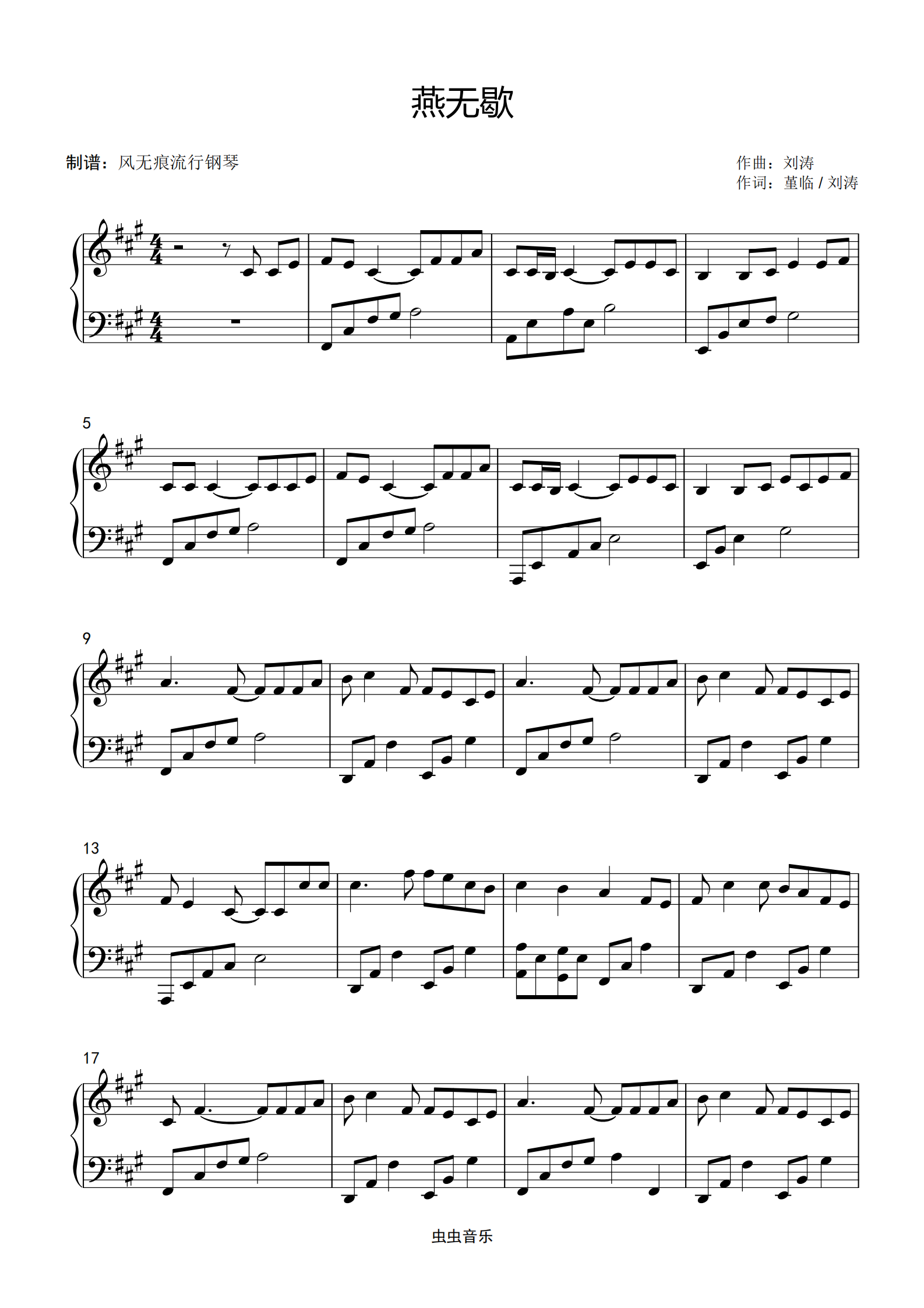 《燕无歇》钢琴谱_林伟_a调_流行钢琴谱五线谱独奏谱_钢琴谱|钢琴