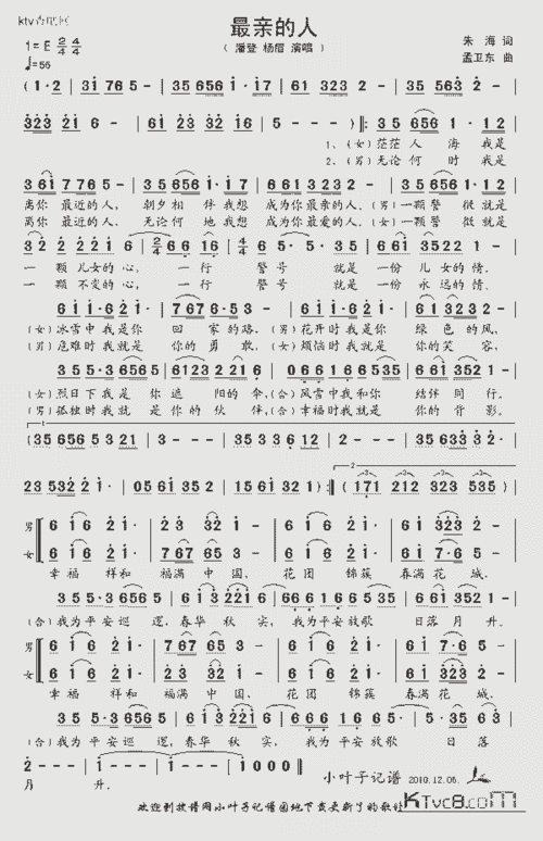 最亲的人简谱,演唱陆海涛,歌词_我爱歌谱网