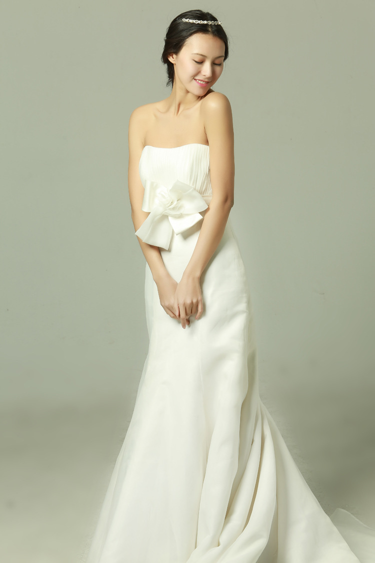 欧美风新款抹胸蝴蝶结新娘婚纱 甜美公主齐地婚纱 性感婚纱
