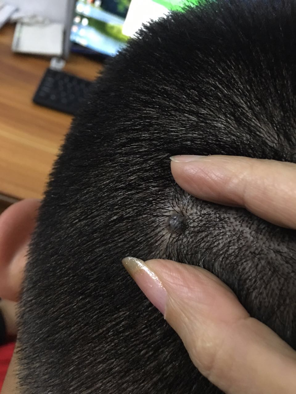 头部后面长了类似痣的黑色东西,没有不适的感觉,不痛不痒,就摸