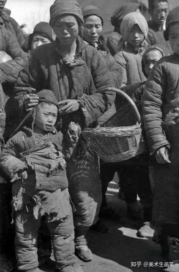 近代苦难的中国人民;逃荒老母的悲凉,乞讨幼子的微笑