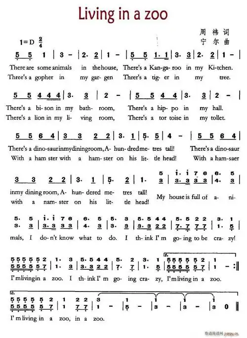 未知 《living in a zoo(住在动物园)(英文儿歌)》简谱