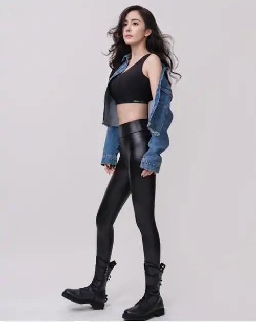 杨幂再次"大胆"出镜,紧身小皮裤搭配运动内衣,秀出魔鬼小蛮腰