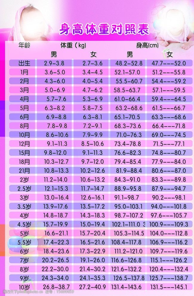 婴儿体重身高对照表图 体重标准 ( 婴儿体重身高对照表图)