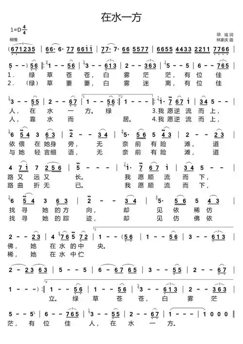 《在水一方》_歌谱简谱_歌词简介_曲谱资料