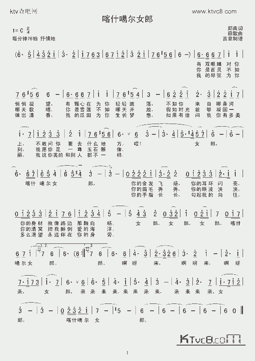 民歌曲谱_喀什葛尔女郎