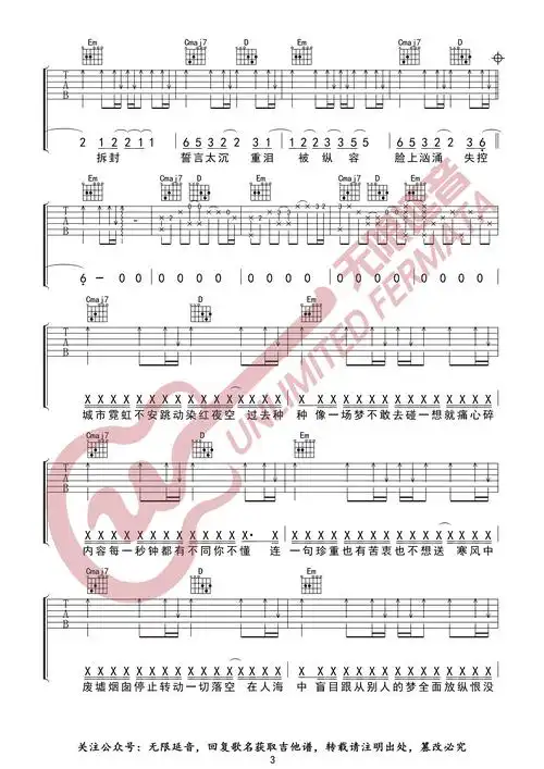 反方向的钟吉他谱(图片谱,无限延音编配)_周杰伦(jay chou)_反方向的