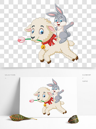 卡通快乐兔子 i>骑 /i> i>羊 /i>