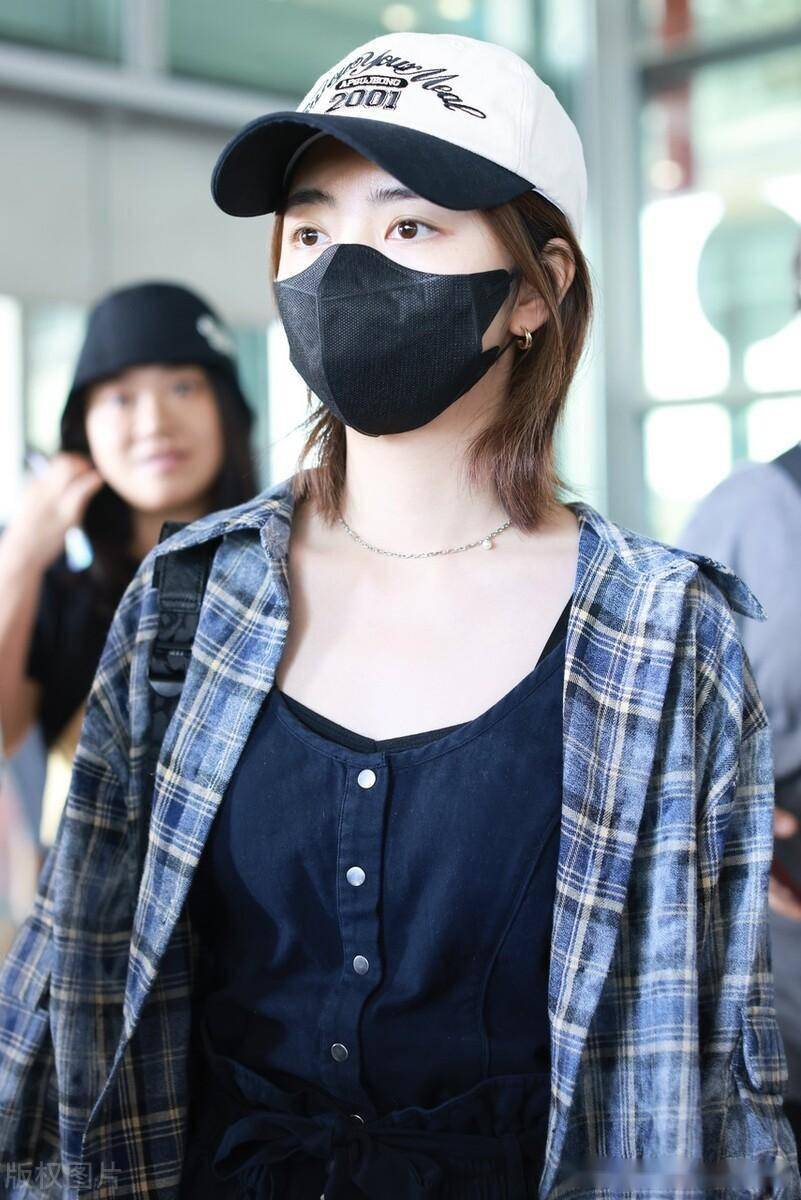 谭松韵现身北京机场,身着格子衫简约随性