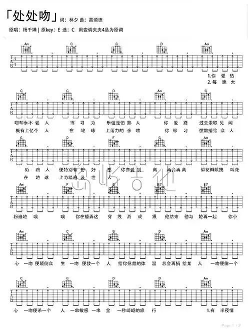 处处吻_吉他谱_c调_杨千嬅-简谱网