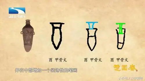 酉在甲骨文中是个象形字,它描摹的是一个圆口,尖底,斜肩,大腹的陶器