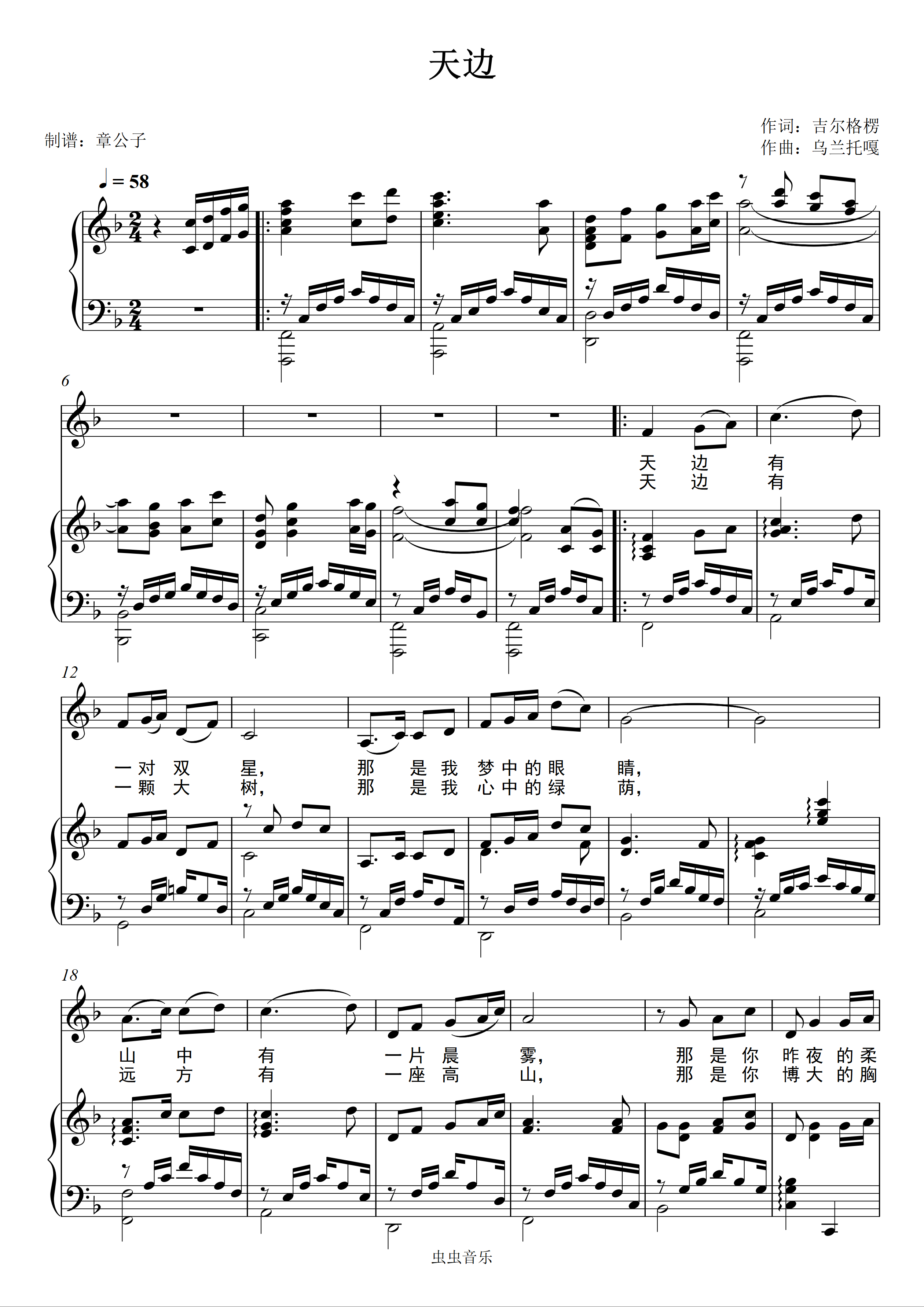 《天边》廖昌永 弹唱(伴奏)谱钢琴谱-章公子-虫虫钢琴