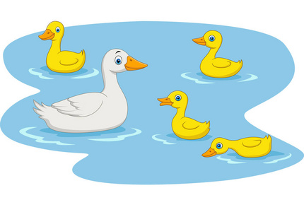 卡通鸭子家庭在池塘游泳的矢量图照片