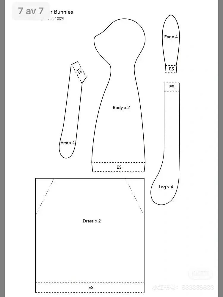 玩偶图纸分享.一款可爱简单的小兔子,一起来挑战制作吧!#手工 - 抖音