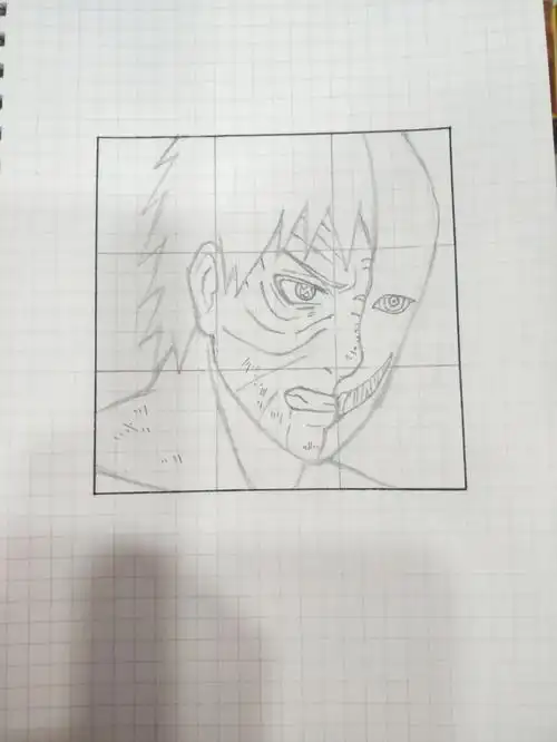 手绘火影忍者带土附线稿过程