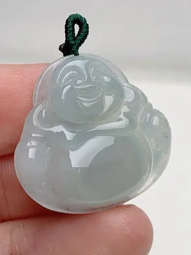 缅甸翡翠细糯种淡绿佛公吊坠(顶珠为装饰珠)