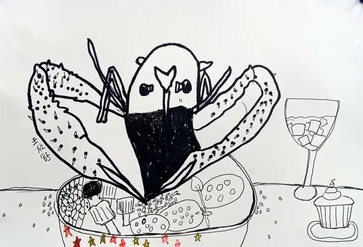 大餐海底生物元素小海鲜的简笔画小龙虾和大螃蟹简笔画海底的海产简笔