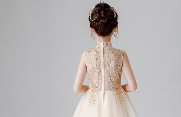 女童主持人小女孩儿童走秀晚礼服裙公主裙花童钢琴演出服拖尾洋气