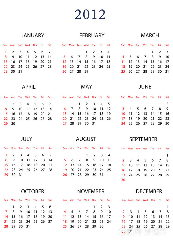 2012年历表图片