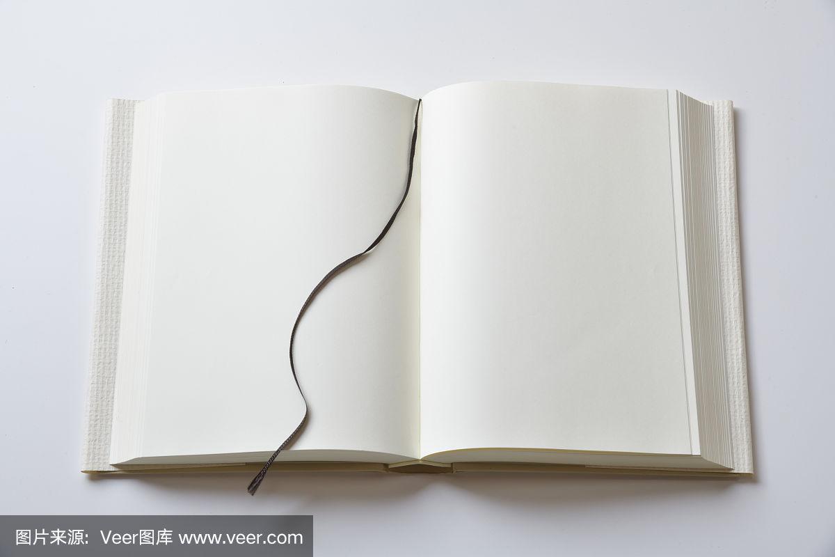 翻开的书的空白页,封面在白色背景上