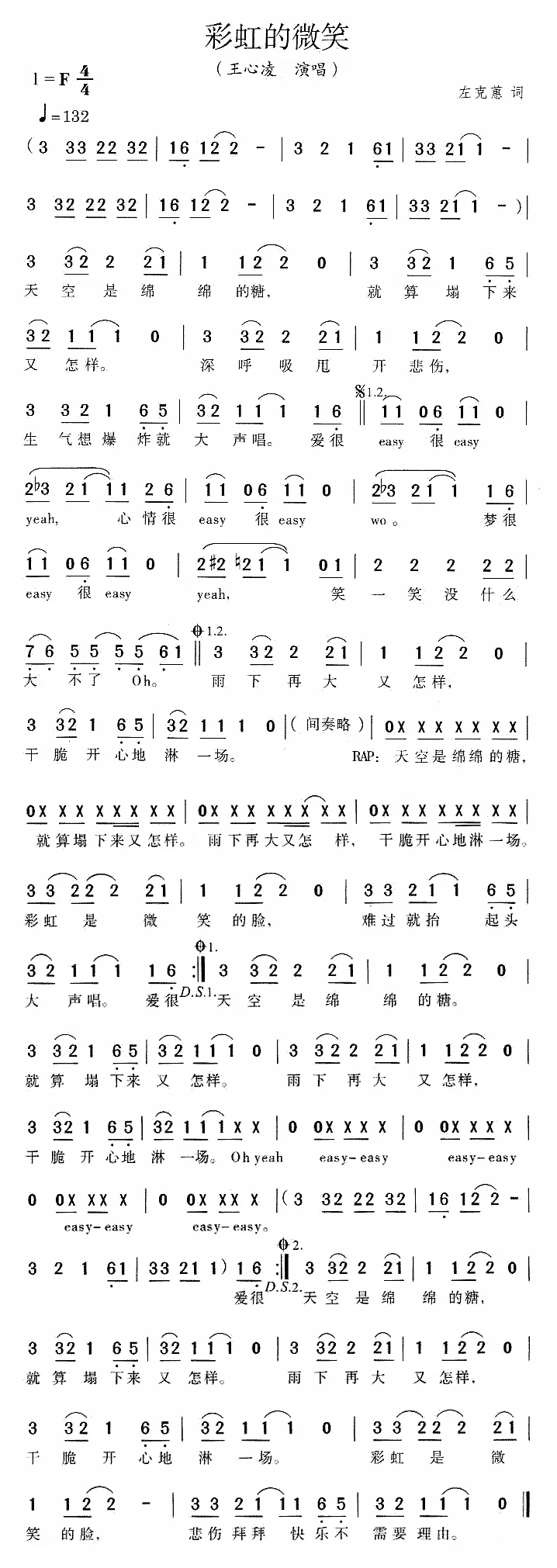 你彩虹般的笑容 - 简谱 - 歌谱简谱大全