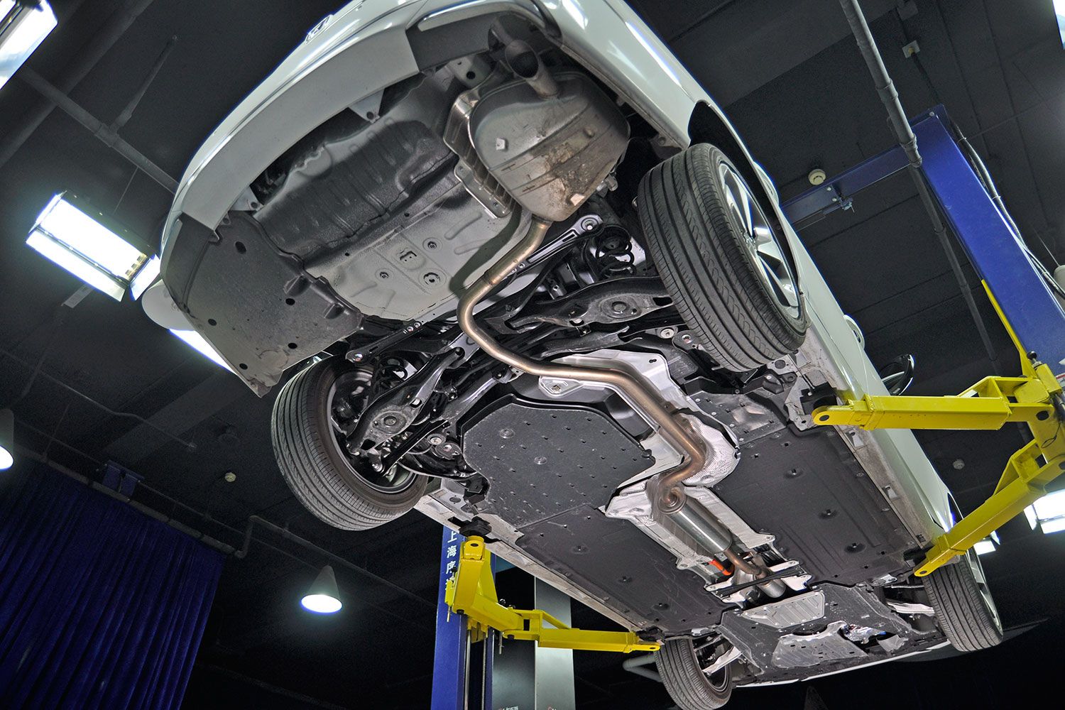 车停之后二话说就升起来了,看看雅阁的底盘,还是非常工整的.