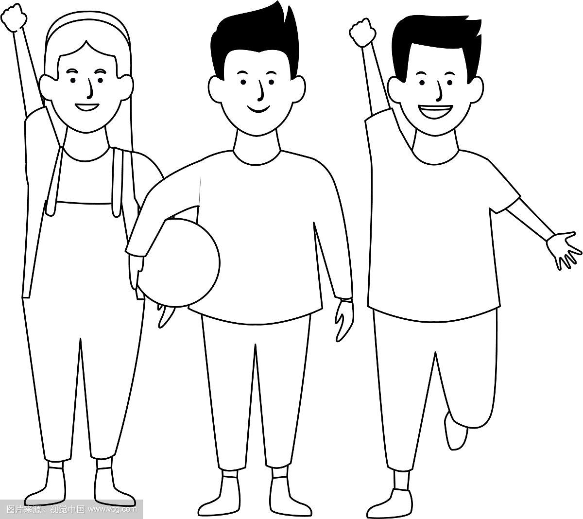 单色轮廓与爸爸妈妈和两个男的儿子,在正式的衣服不露面插画-正版商用