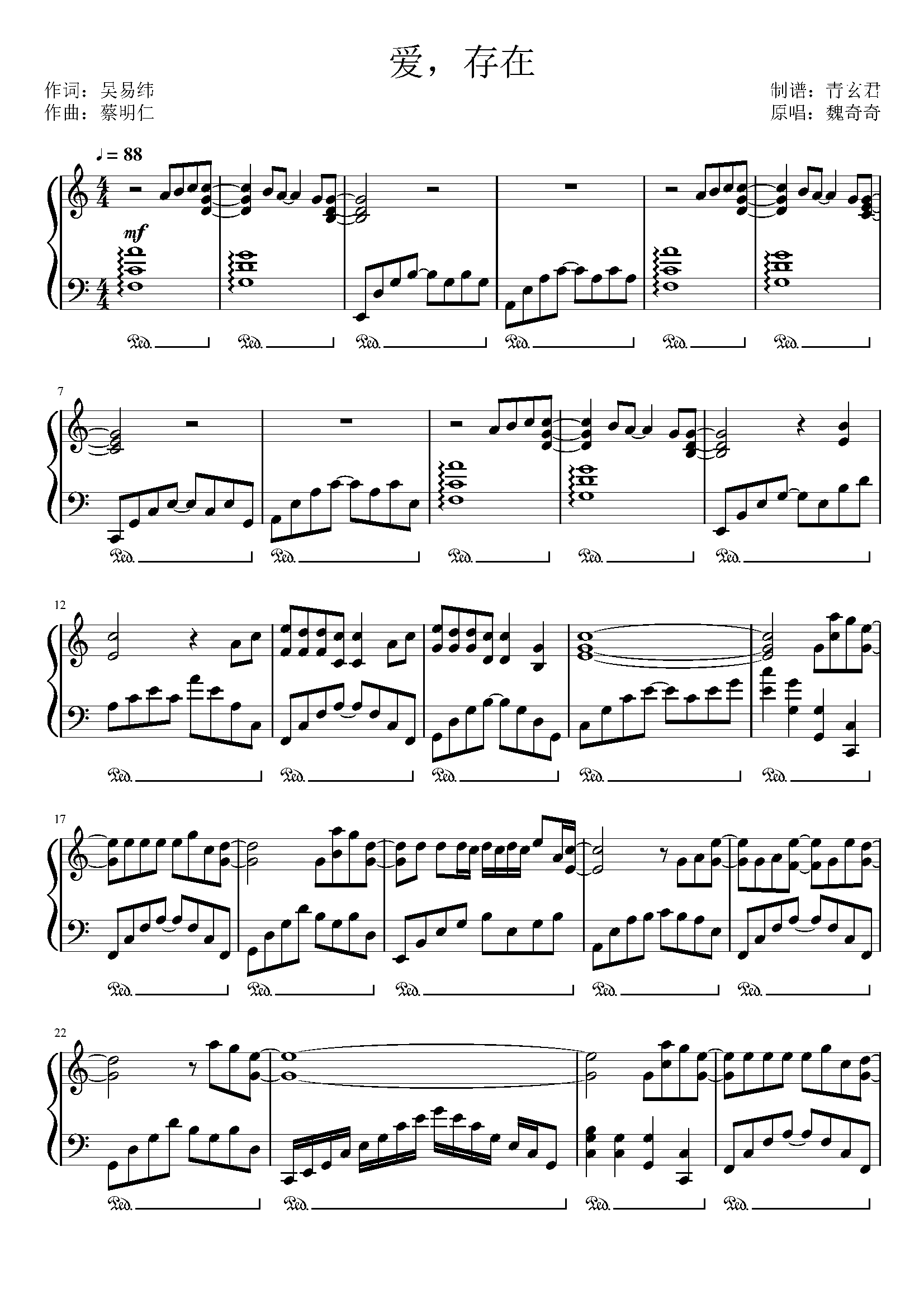 爱存在-完整版五线谱预览1-钢琴谱文件(五线谱,双手简谱,数字谱,midi