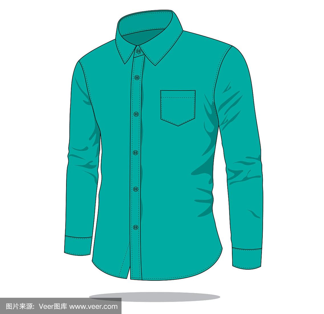 蓝绿色长袖制服衬衫矢量模板