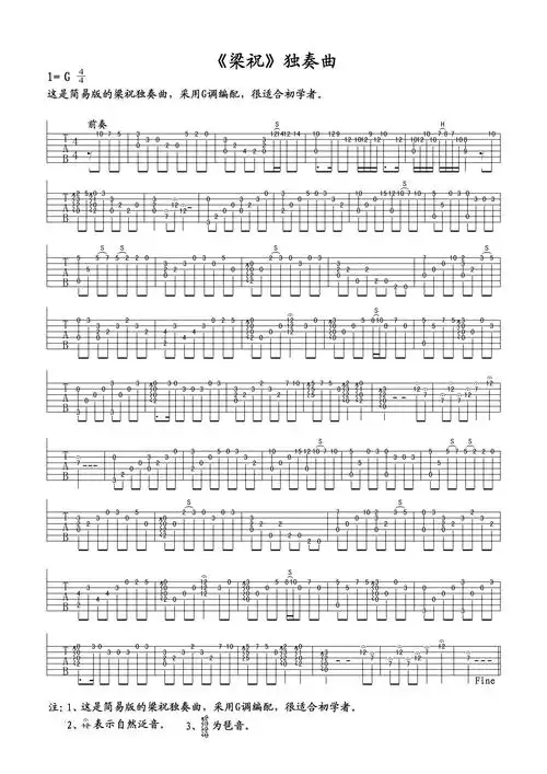 梁祝g调吉他独奏谱