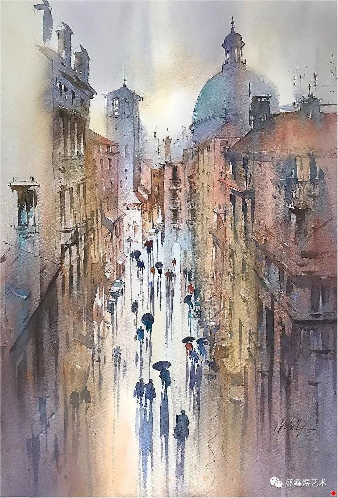 城市中的建筑水彩画作欣赏,空间感强的水彩画