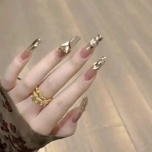 纯手工穿戴甲美甲加长爆闪碎钻成品显白高级感轻奢假指甲贴片新款