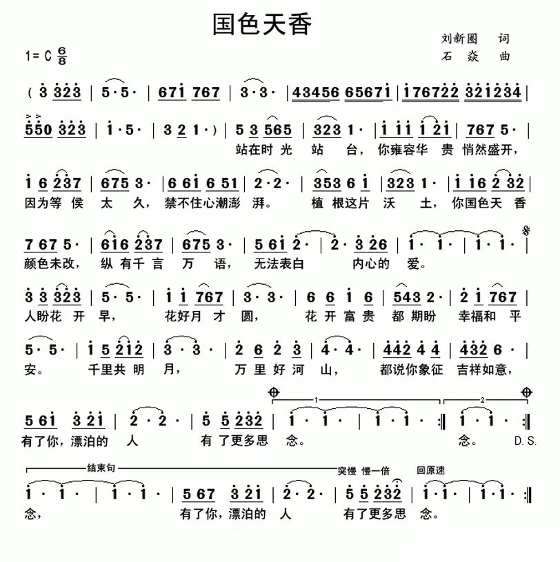 国色天香(刘新圈词 石焱曲)简谱-民歌曲谱-爱曲谱网