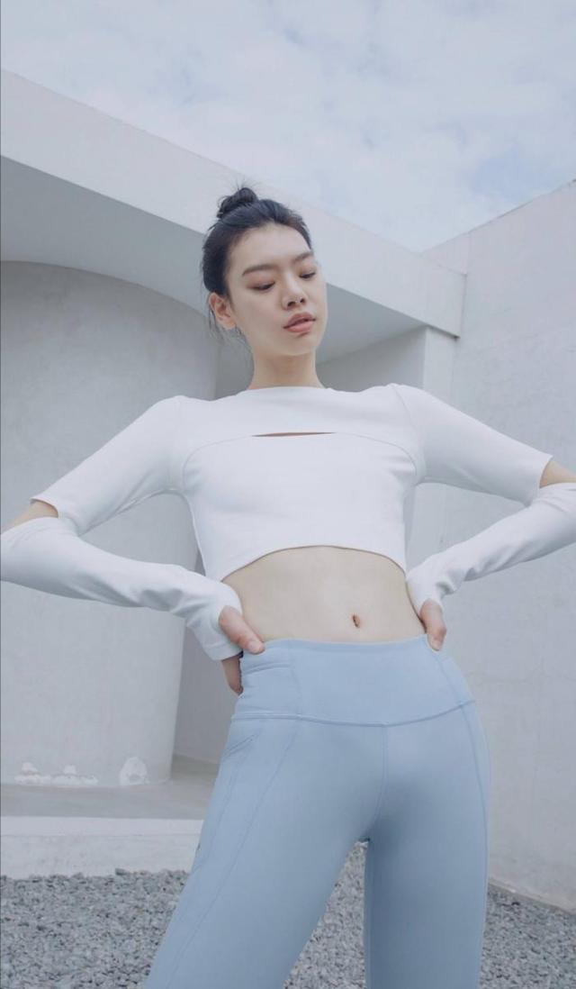 高圆圆早前运动品牌宣传照一身健身装炫腹肚子一点赘肉没有