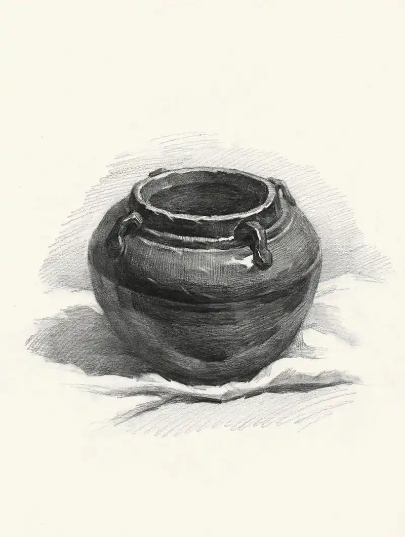 素描静物陶罐组合步骤图